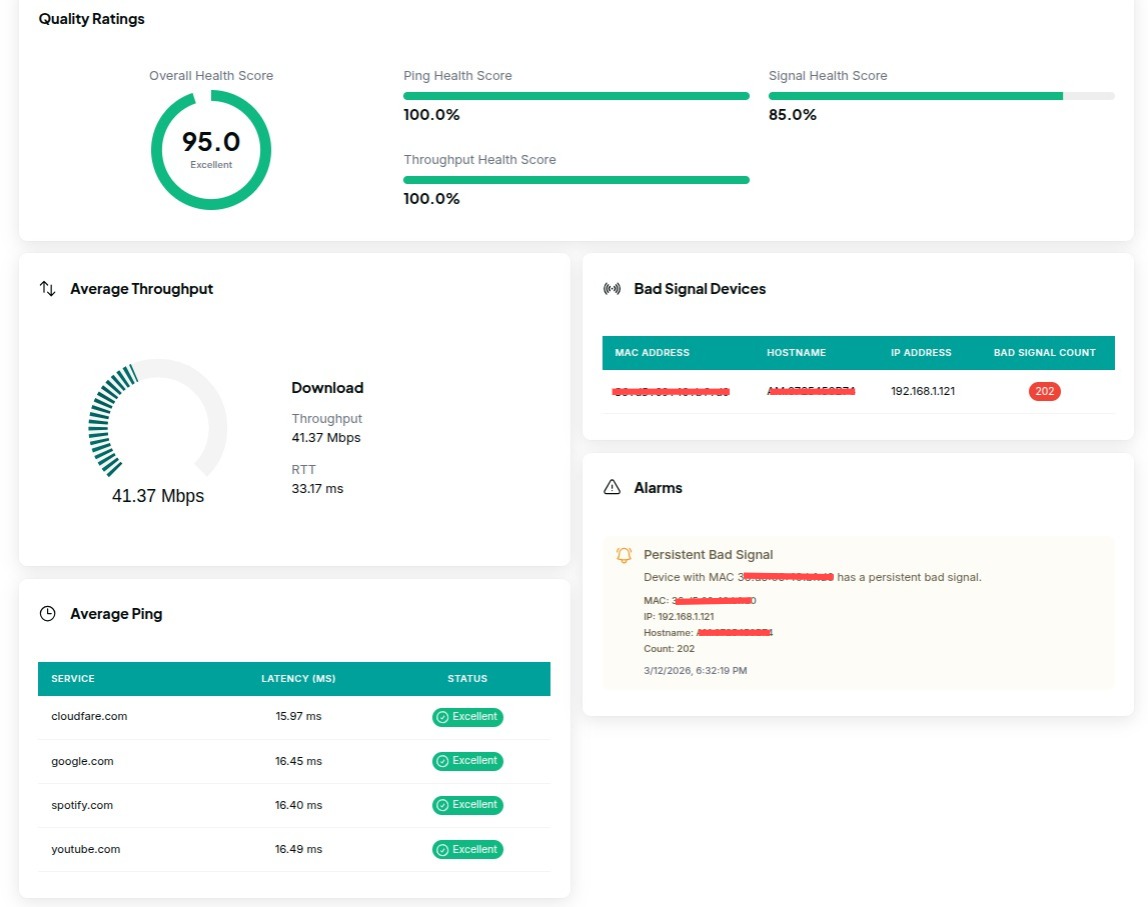 NuFibre doesn't just want to know if a customer is connected; they want to know how well they're connected. Oktopus continuously monitors Quality of Experience metrics across the fleet, turning raw device data into actionable insight. When something starts to degrade, the team knows before the customer does.
