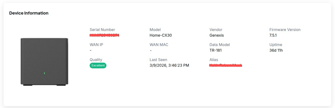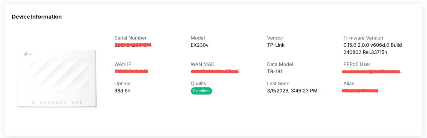 This is where Oktopus really earns its place. The platform supports both the Genexis Elite HX30/CX30 (via TR-369/USP) and TP-Link EX Series CPEs (via TR-069/369) from a single, unified controller. No special modules, no workarounds — just clean, consistent management regardless of what's in the customer's home.