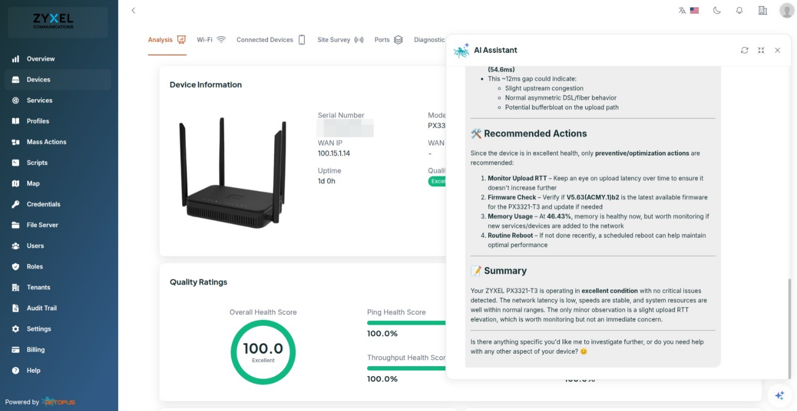 The Oktopus platform brings real-time data capabilities to CPE management, providing ISPs with immediate visibility into device performance, health status, and network quality metrics. This constant stream of information flows seamlessly from edge devices scattered across customer locations back to the cloud, creating a comprehensive view of network health at any given moment. Rather than relying on reactive customer complaints to identify problems, ISPs can now see issues emerging in real time.